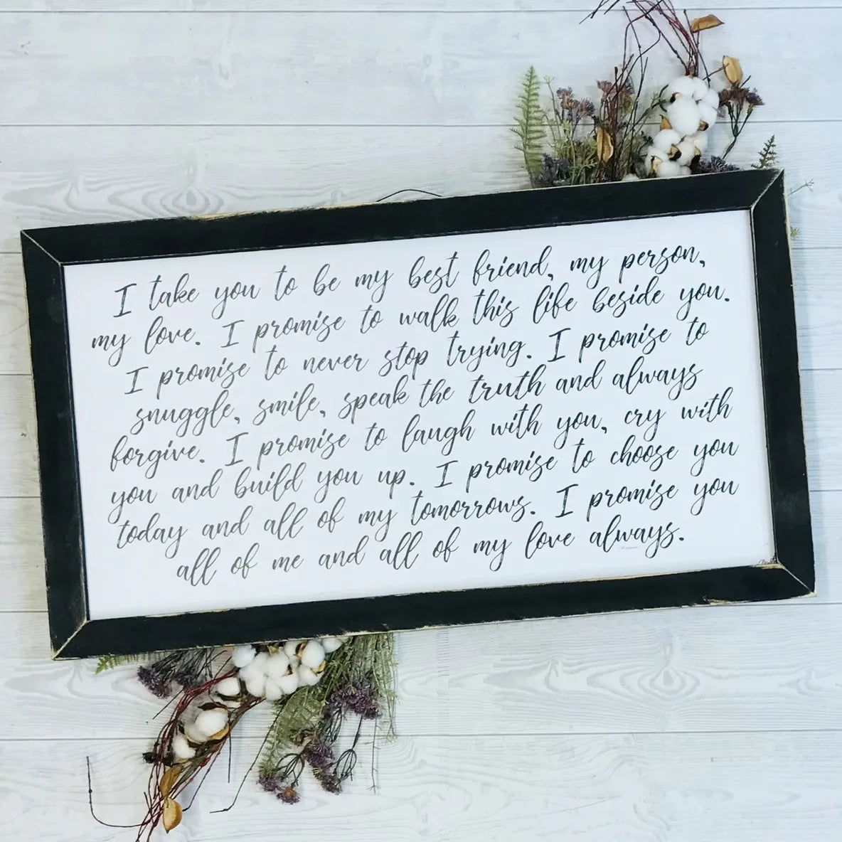 My Vow Sign The framed print measures 17x31 inches. Comes in two frame colors.
